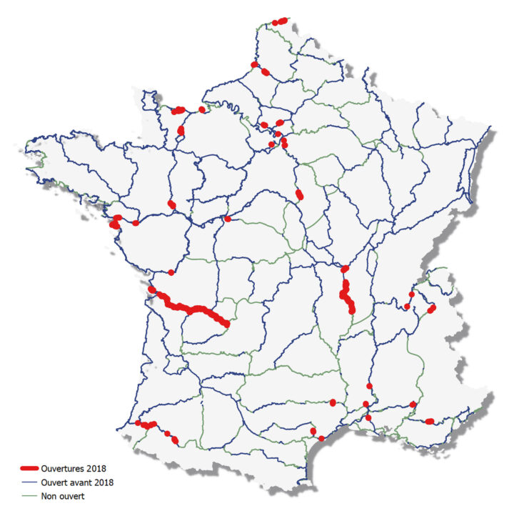 760 km ouverts en 2018 : 470 km au Schéma national et européen, 293 km aux schémas locaux